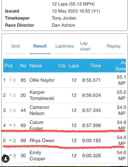 Rhys dropped to 3rd on the start and had a great race long duel with @jakubtrzeciak71 with Rhys just coming out on top to finish 2nd. (See more here)