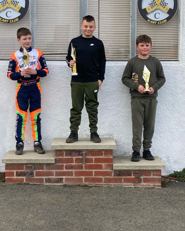 With 20 karts lining up on the grid. Heat one. Stated 8th finished 3rd. Heat two. Started P13 finished 4th. This put Rhys on pole for the the 12 minute final.