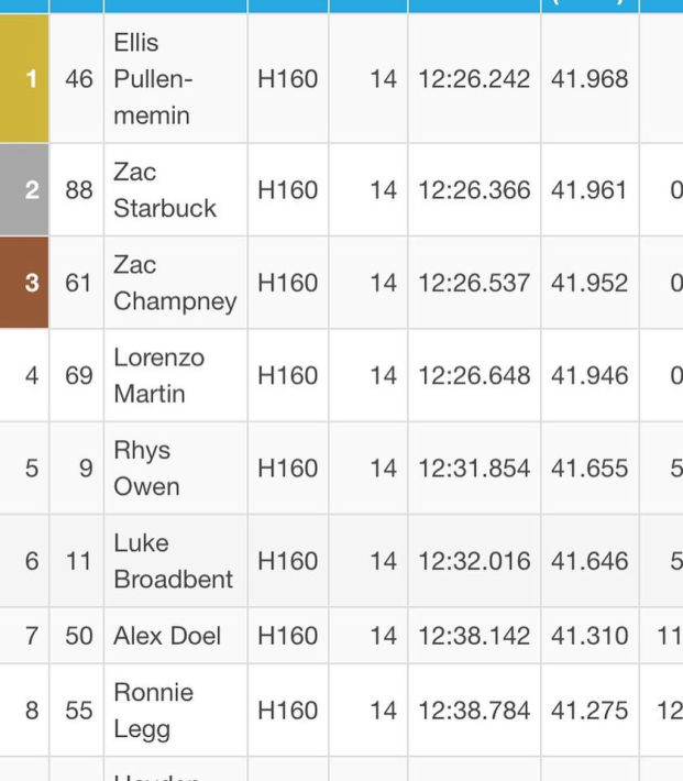 Rhys would then have a race long battle with Charlie Domonkos swapping places back and forth. Charlie just pipping Rhys to 2nd.